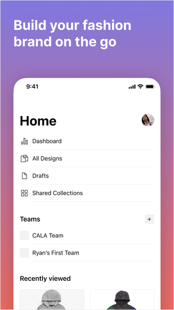 قم ببناء علامتك التجارية في مجال الموضة أثناء التنقل باستخدام CALA ، أول تطبيق كامل لتصميم الموضة على الهاتف المحمول في العالم. من الفكرة الأولية إلى الإنتاج والتوصيل ، يحتوي CALA على كل ما تحتاجه لتشغيل وإدارة علامتك التجارية بسهولة وسرعة.